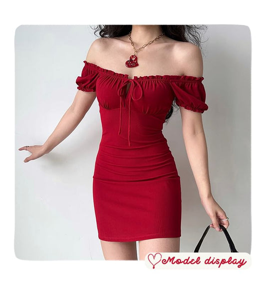 Long Sleeve Cold Shoulder Plain Mini Sheath Dress