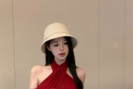 Halter Cowl Neck Plain Ruffle Asymmetrical Sheath Dress
