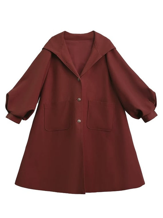 Red Balloon Coat Preppy Hooded Long Sleeves