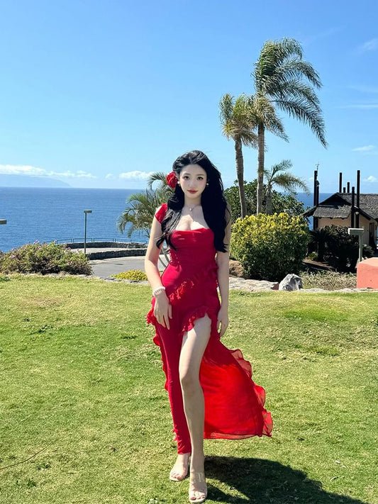 Hime Red Dress Layered Waist Lolita Corset High-low Hanayome
