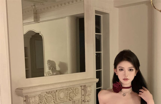 Dress Neckline Flower Princess Red Bead Chain Bow Gorgeous Lolita