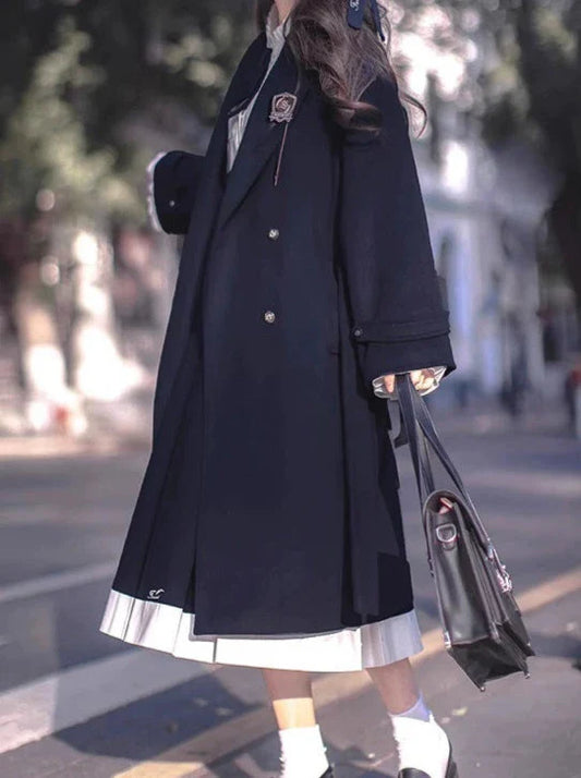 Trench Black Skirt + Metal College Badge + Shirt Pleated Embroidered Coat Ribbon