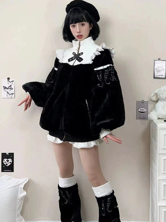 Neck Zipper High Fur Mine Coat