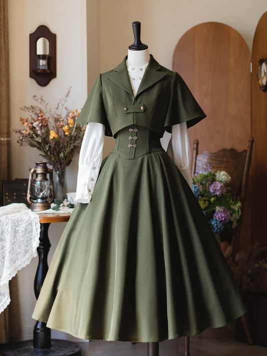 Green Notched Collar Cropped Coat