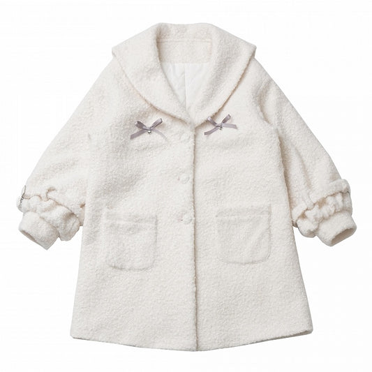 White Christmas Bowknot Detail Fleece Coat