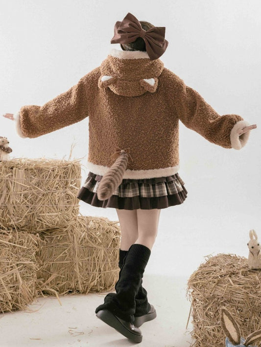 Brown Fleece Lesser Panda Ears Hooded Winter Coat