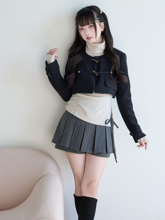 Toggle Jirai Closures Black Wool Cropped Blend with Kei Coat