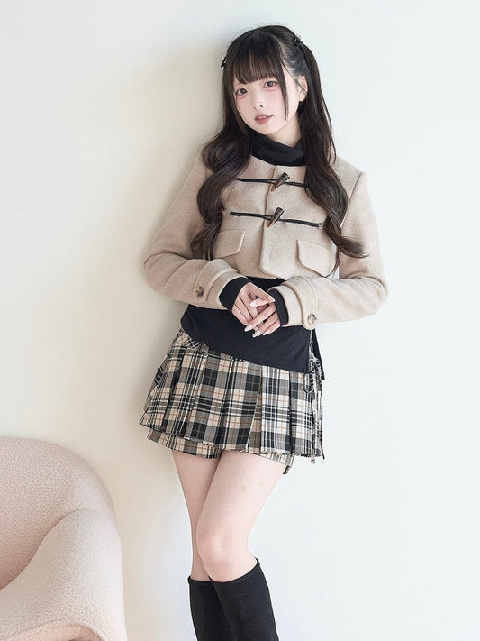 Coat Wool Kei Style Beige Blend Cropped Closures Pure Toggle Jirai with