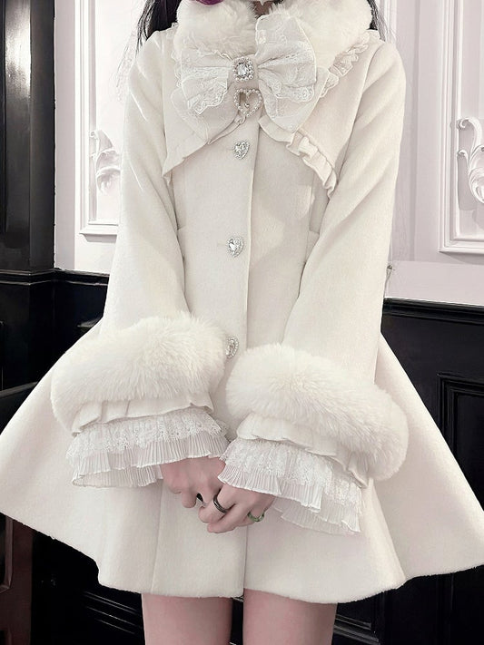 Detachable Lining Coat Fleece Cape with Fur Winter Lolita Collar White