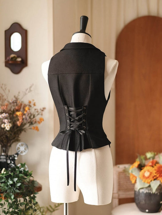 Blazer Waistcoat Collar Vintage Black Tailored
