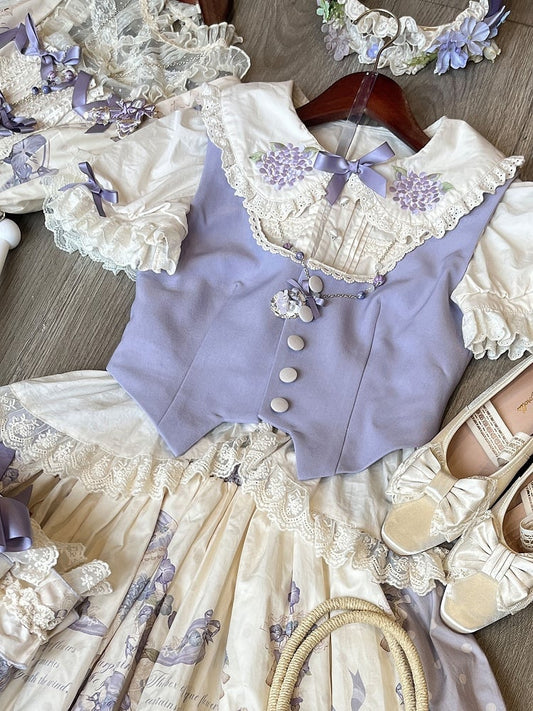 Lolita Waistcoat Design V-neck White Fake Ouji Two-pieces Long