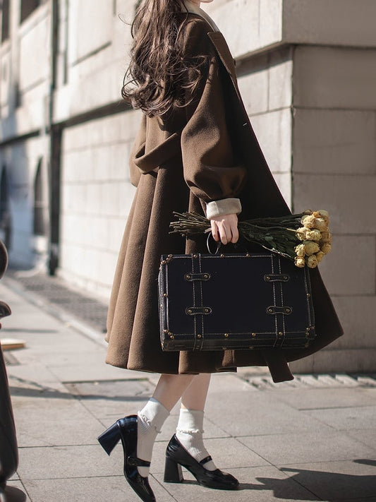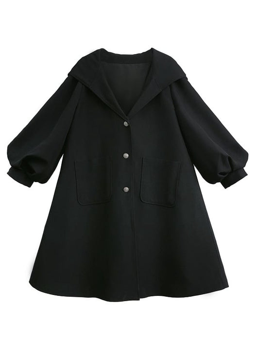 Balloon Sleeves Long Preppy Hooded Black Coat