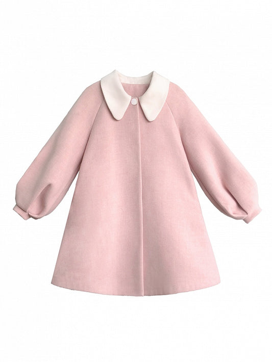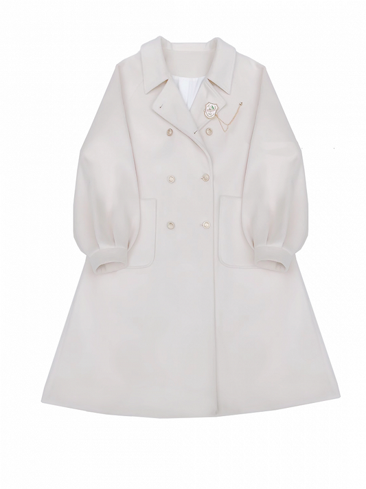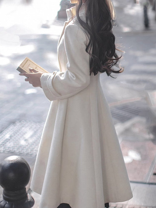 Double Breasted Design Notched Collar with Long Woolen Coat White