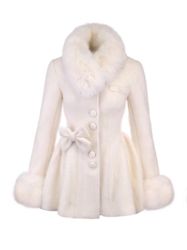 Jirai Kei White Tiered Lace Coat with Detachable Cape and Shaggy Collar