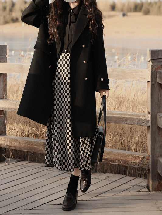 Regular/Thicken and for Winter Black Version Autumn Preppy Vintage Hooded Coat