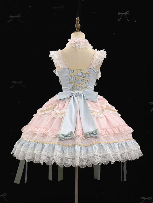 Mint Green Bows Pink and Blue Sweet Lolita Corset Dress with Choker