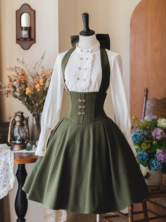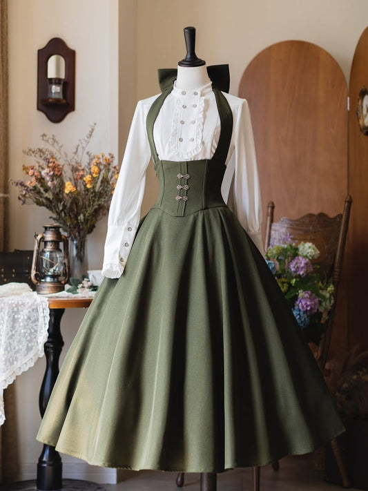 Green Long Version Vintage Boned Corset Belt High Waist Skirt with Detachable Halter Strap