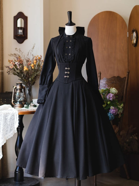Black Princess Corset Waist Dress Ruffle Skirt