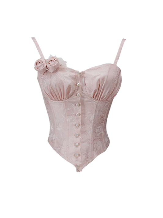 Pink Rosettes Brooch Boned Corset Top