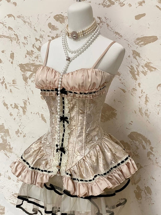 Pink Princess Corset Waist Dress Ruffle Skirt