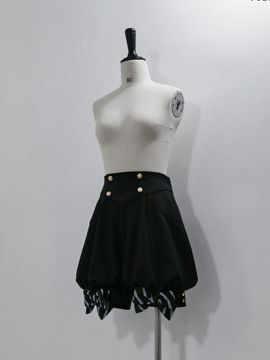 Corset Belt High Waist Black and White Ouji Lolita Striped Shorts Circus Vibes