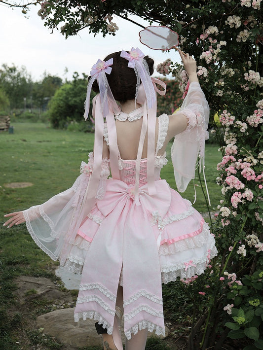 Accents Bead Lolita with and Dress Corset Balletcore Bow Chains Pink Princess