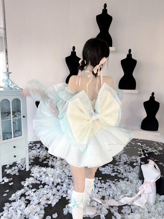 Green Bowknots Decoration Bodice Corset Top with and Puffy Skirt Yellow Set Balletcore