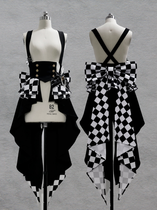 Fabric Corset Bunny Theater Peplum Tail Chess Train Swallow with Pattern Shoulder Straps