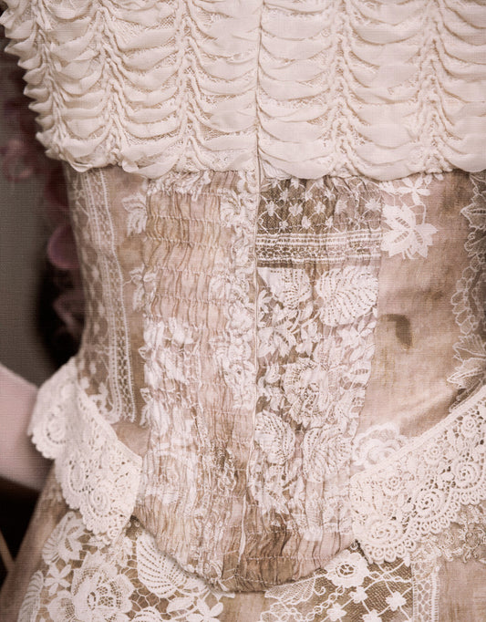 Neck Rococo Top Accents Cascading Detachable Illusion Ruffle Halter Corset with Lace