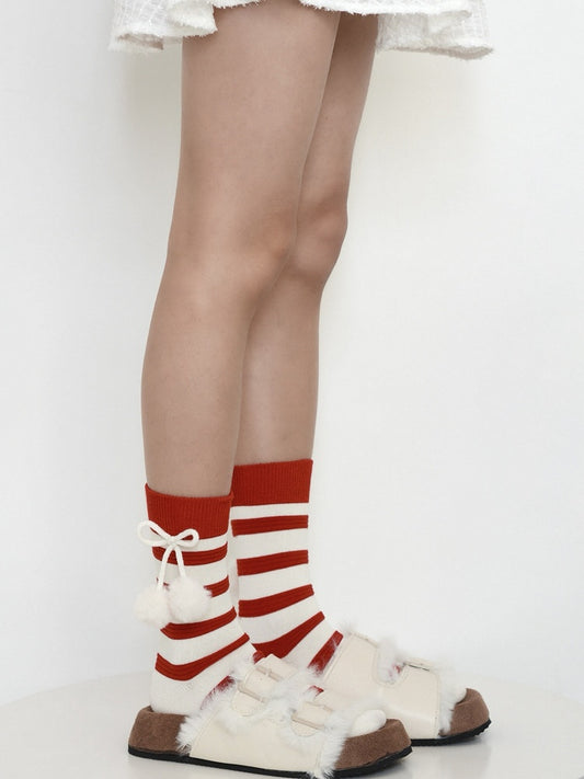 Decorations Calf White Striped with Pattern Pom-Pom and Socks Red