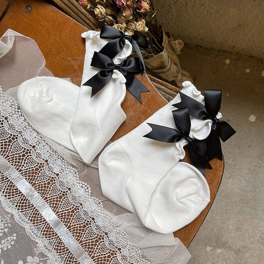 White/Gray/Black Decoration Ruffled Bow Sockswith