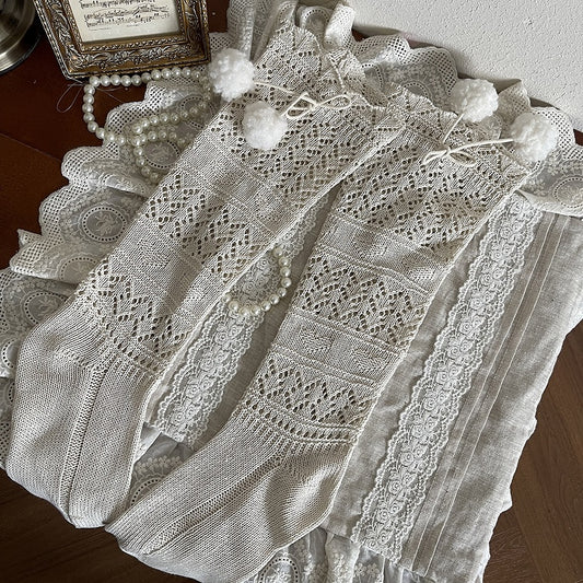 Cotton Socks Bow Breathable White Creamy Lace Trim Decorated