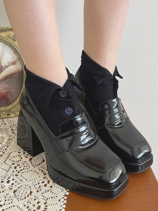 Button Socks Collar Design White/Black/Gray Turn-Down