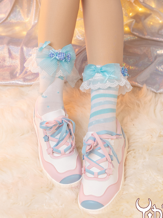 Black White Crescent Moon Charms Bownkot Lolita Socks