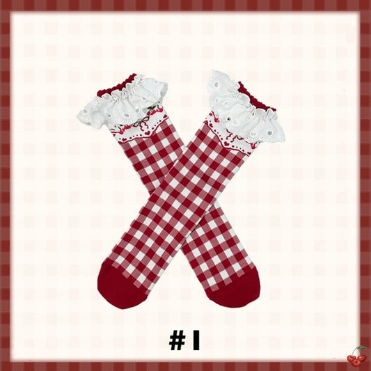 Red Sweet Plaid Striped Polka-dot Pattern Socks