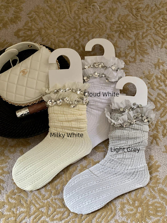 Decorated Socks Over-the-Knee Rhinestones Milky in Sparkling