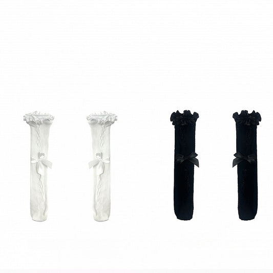 Trim Socks Ribbon Mid-Calf Bow with JK Lace Black/White