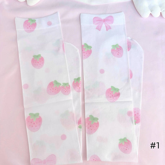 Socks 2 Strawberry Options with Print Over-the-Knee Pink
