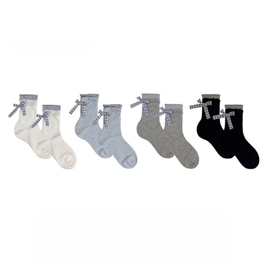 Bowknot Socks Slimming Black/White/Gray Breathable Decorated