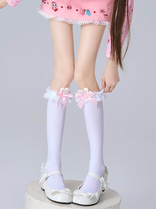 Bunny Socks Calf Ears White Bow Ruffle Lolita