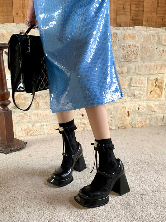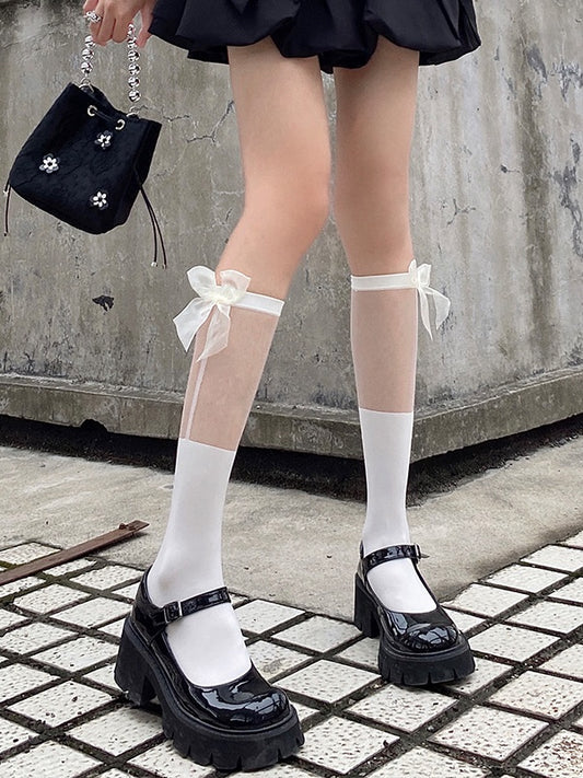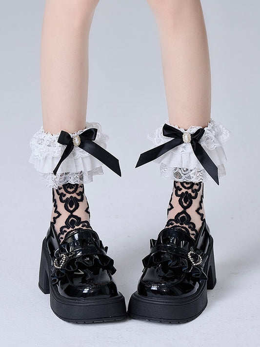 Mesh White/Black Bow Lace Decorations with Socks Calf