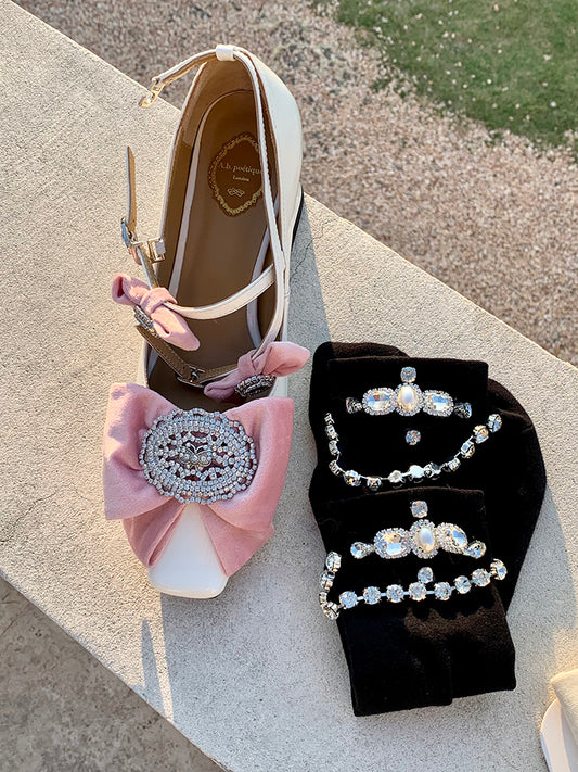 Bowknot Colors Lace 4 Calf Mesh Rhinestone Decoration Socks with