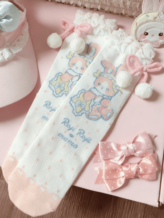 Lolita Pom-Pom Options Color Bow 4 Pattern Bunny With Sweet Socks
