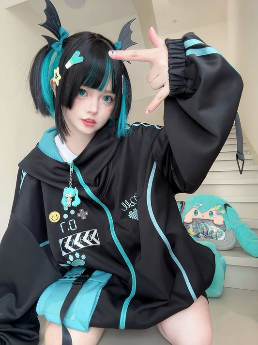 Luminous Cyberpunk Jirai Kei Jacket Zip Up Front Sweatershirt