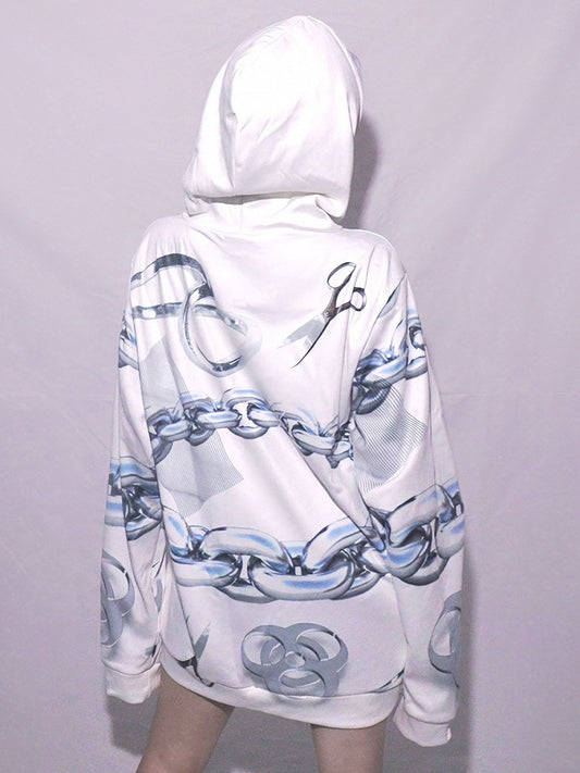 Hoodie And Cyberpunk Scissor White Print Chain