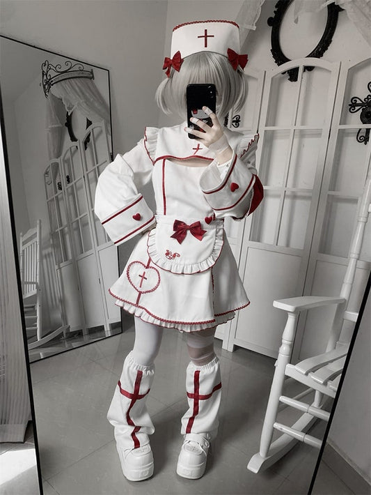 and Halloween Decoration Red for Cross White with Bow Embroidery Cap Nurse