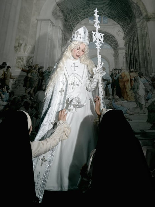 Embroidery Silver Cross Lolita Decorated Details Nun White and Cloak