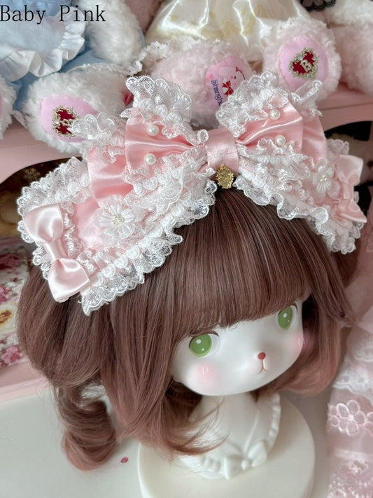 Bow Sweet Cream Hat Ears Vintage Pink Bunny Decorated
