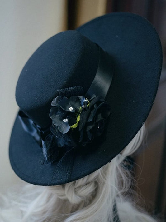 Hat Creamy Decorated Pink Bowknot