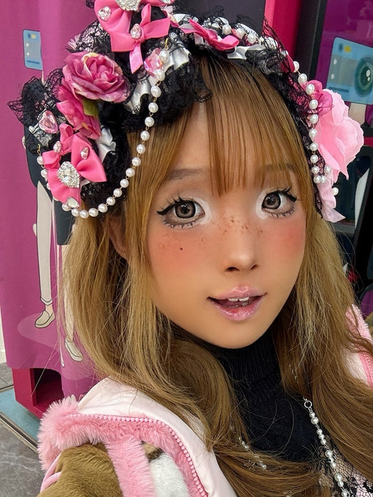 Trim Hairband Heart Decorated Design BlackPink Beaded Floral Bowknot Charm Rhinestone Lace
